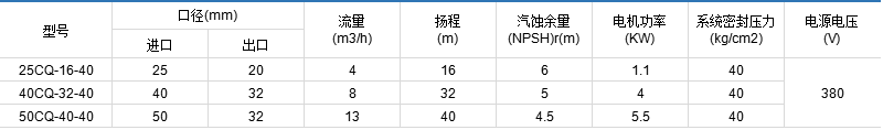 CQ型高壓磁力泵性能參數(shù)